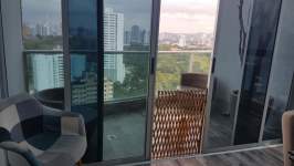 19-8411 ES Hermoso apartamento tipo loft, con cocina abierta, area de lavanderia cerrada, balcon con vista a la ciudad y al mar, ventanales piso a techo en la sala y hermosa vista desde la habitación principal. Cuenta con areas sociales completas: Piscina, gimnasio, salon de juegos, salón de fiestas, parque infantil, canchas, sauna. A pocos minutos del parque Omar